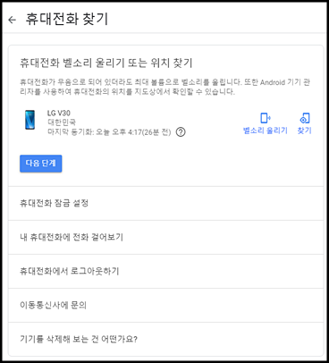 구글 휴대전화 찾기 기능을 이용하면, 휴대폰 위치추적뿐만 아니라 휴대폰 잠금 설정, 기기 데이터 삭제 등이 가능합니다. 구글에서 무료로 제공하는 기능이니 부담없이 사용 가능합니다 ~